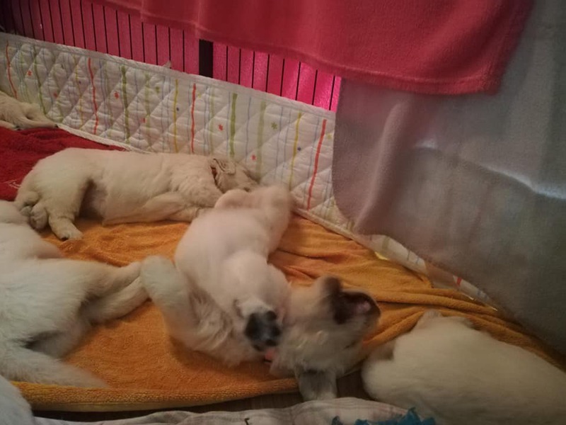 Loli begann um Punkt 18.00 Uhr mit den Wehen und brachte uns bis 1.20 Uhr 9 gesunde Welpen zur Welt.